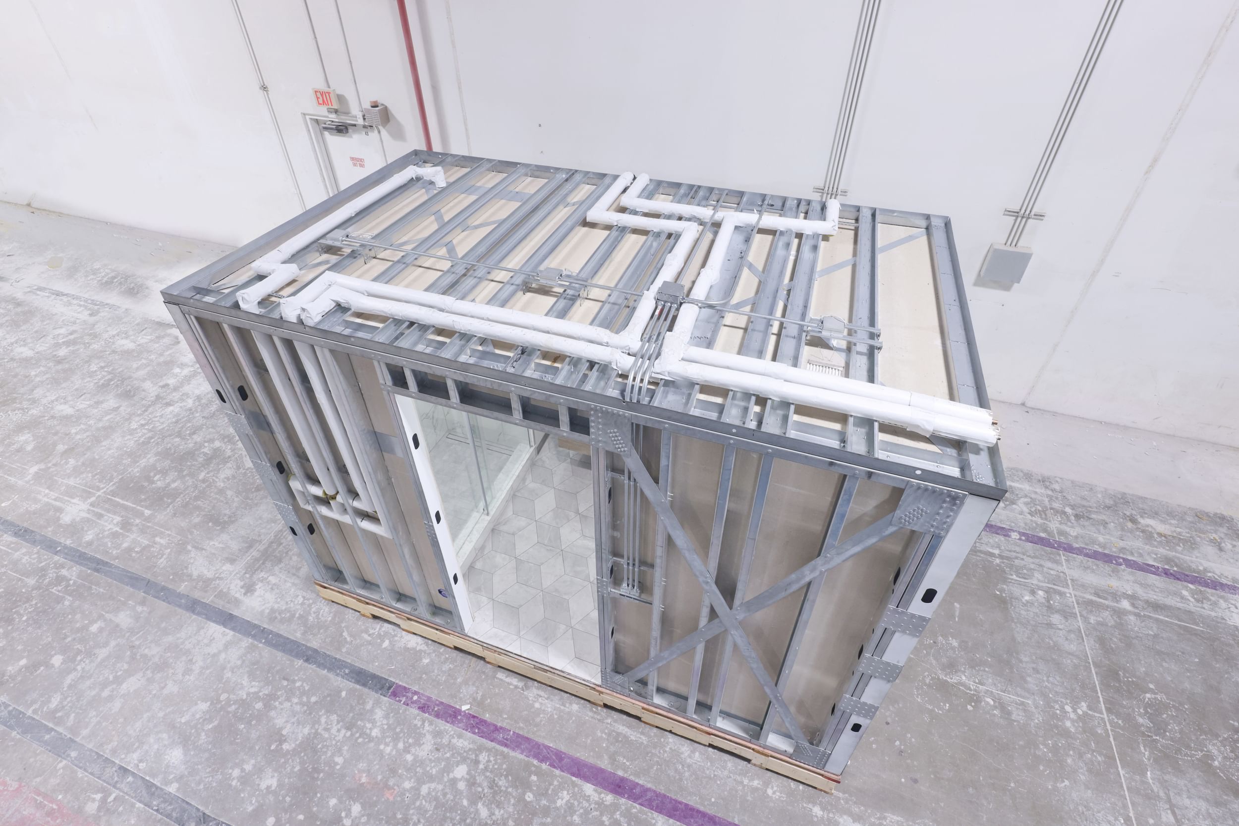 Aerial view of a completed bathroom pod.