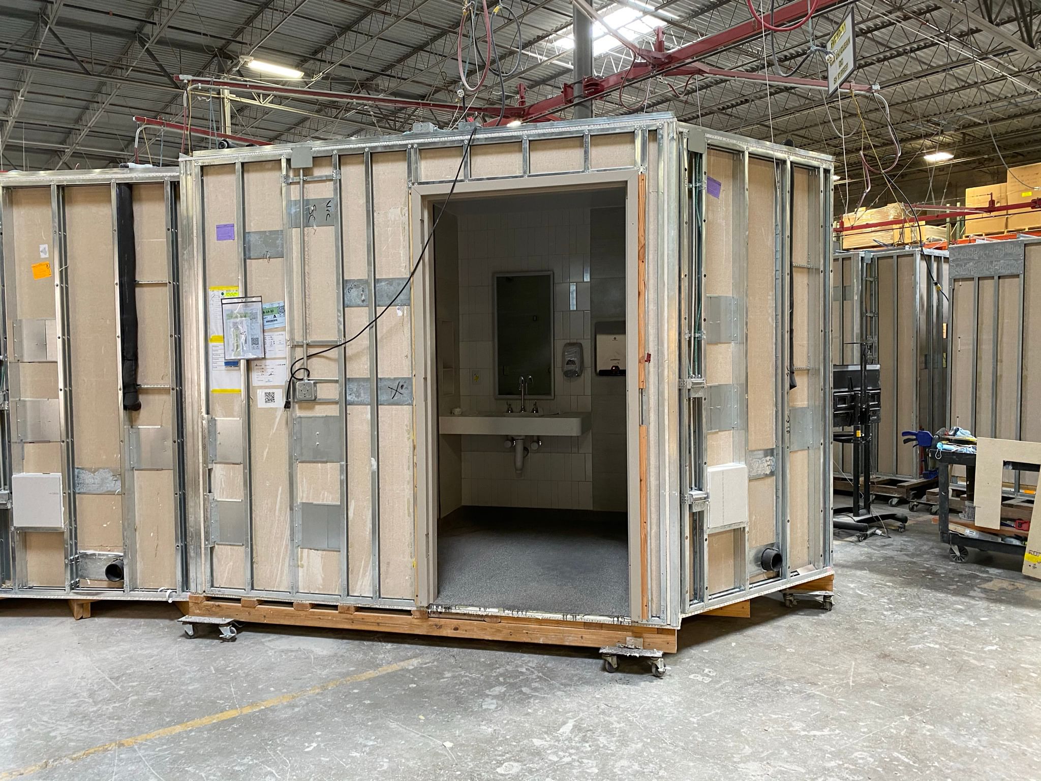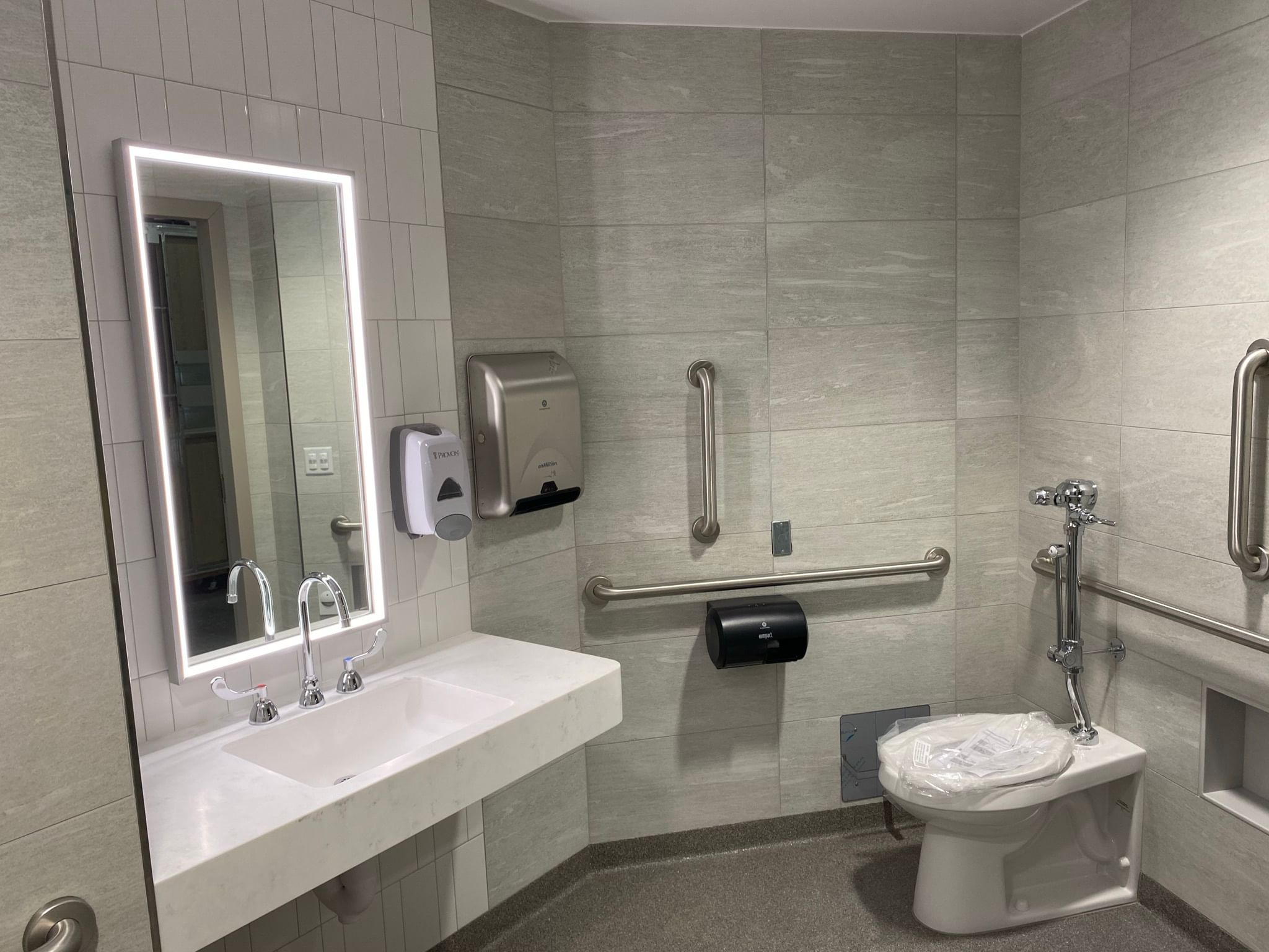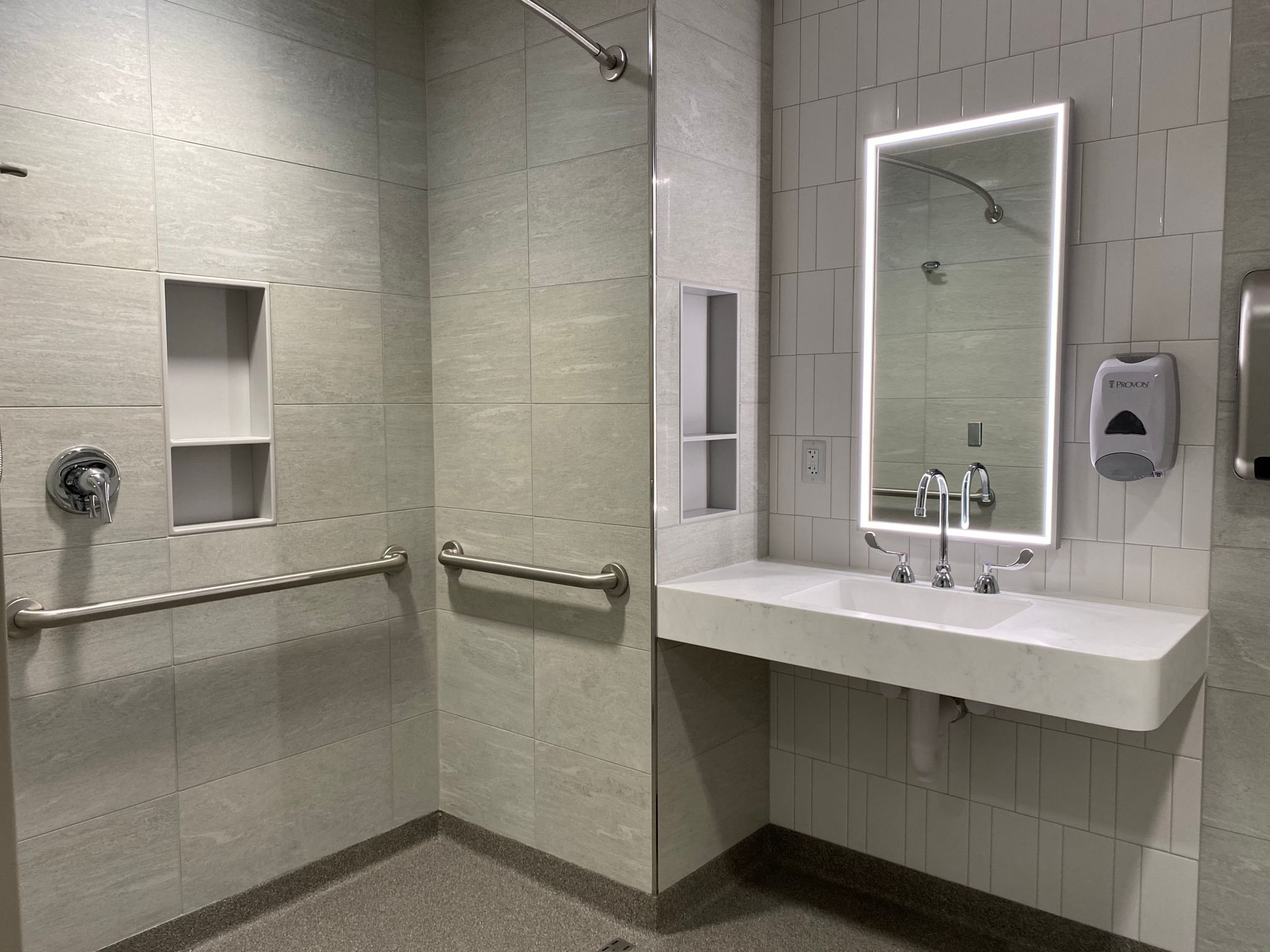 SurePods provided patient bathroom pods for 180 rooms for this project. During the preconstruction phase, SurePods developed two full-scale bathroom mockups to provide the Atrium Health team with a tangible preview of the proposed designs. These mockups allowed the team to physically inspect and evaluate key design elements, including the flooring options. After reviewing the mockups, the project team made the decision to choose epoxy flooring over tile.