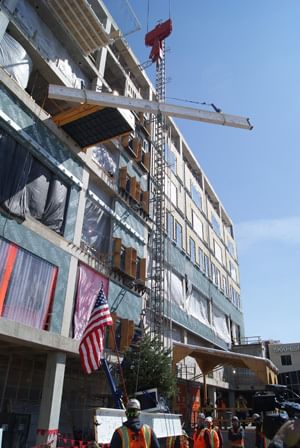 The complexity of this 831,327 sq. ft. replacement hospital, combined with a highly aggressive schedule, required creative solutions to be successful. The fact that the hospital had to be open by January 2015 drove the GC, Mortenson, to determine how to accelerate construction while maintaining the highest quality standards. The traditional on-site linear approach would have resulted in a 36-month schedule; however, an overall 18% schedule compression was required to deliver in just 29.5 months. Prefabrication quickly became the solution. Prefabrication allowed several building elements to be built off-site. A Mortenson project study attributed the bathroom pods with a $3.1 million direct cost savings.