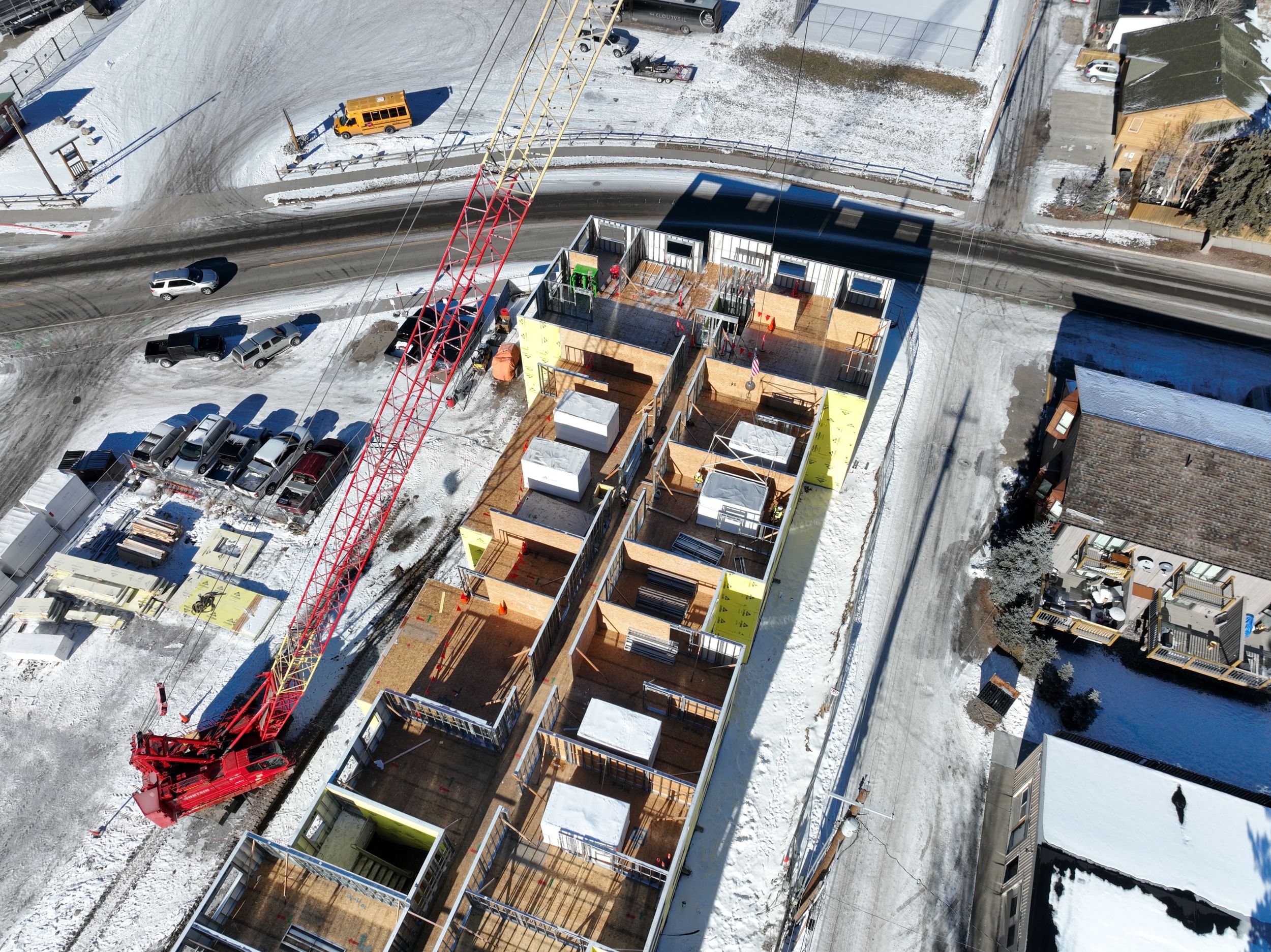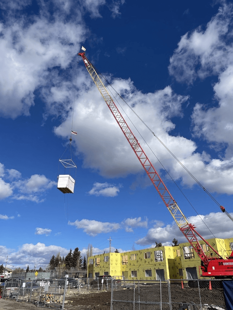 SurePods addressed overhead clearance issues on level 3 by installing small caster wheels on the pallet, allowing easy movement with minimal lift. The final on-site connections for full pod functionality were limited to hot and cold water supply, high and low voltage tie-ins, and two waste and vent tie-ins, showcasing SurePods’ commitment to efficiency and practical solutions in modular construction.