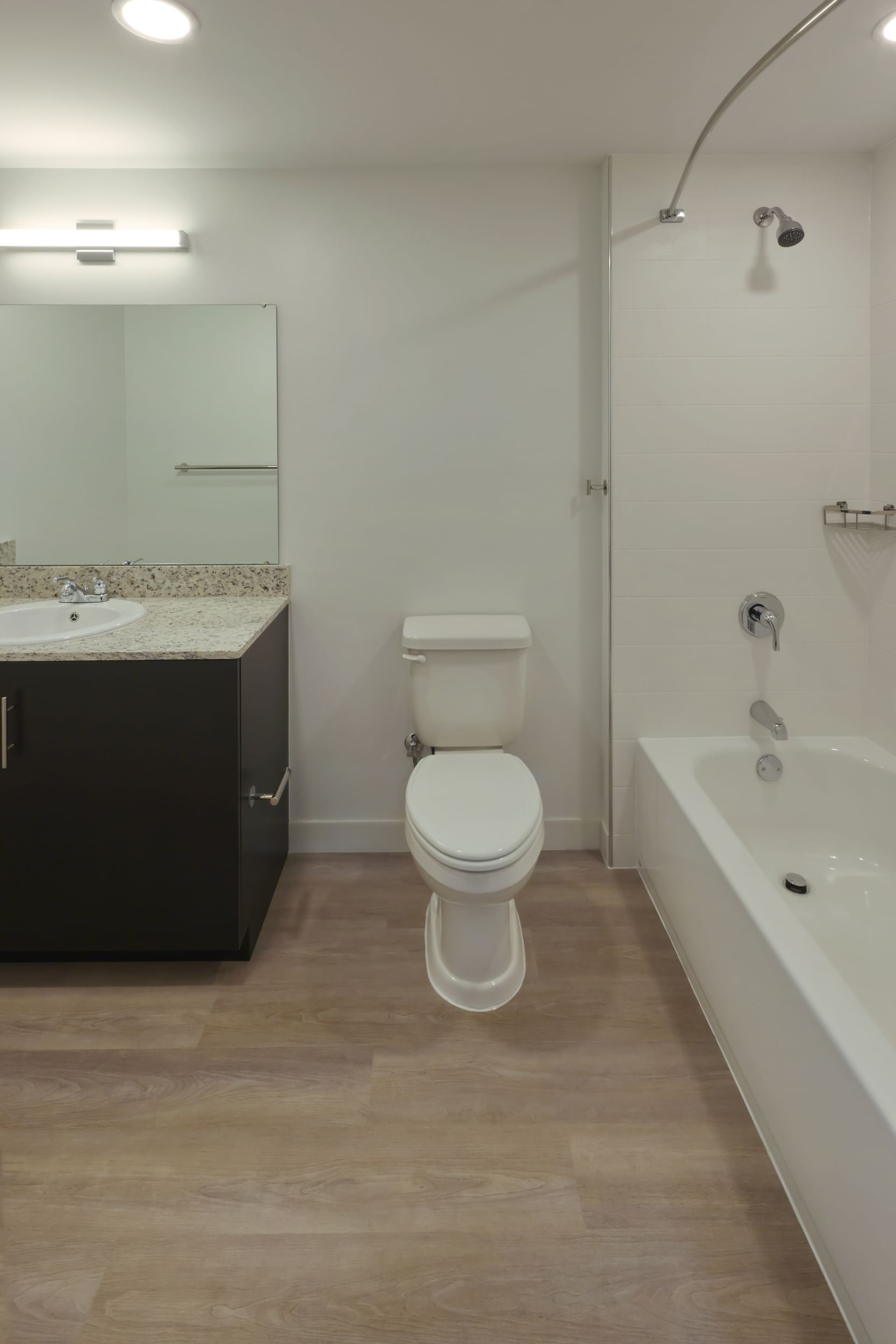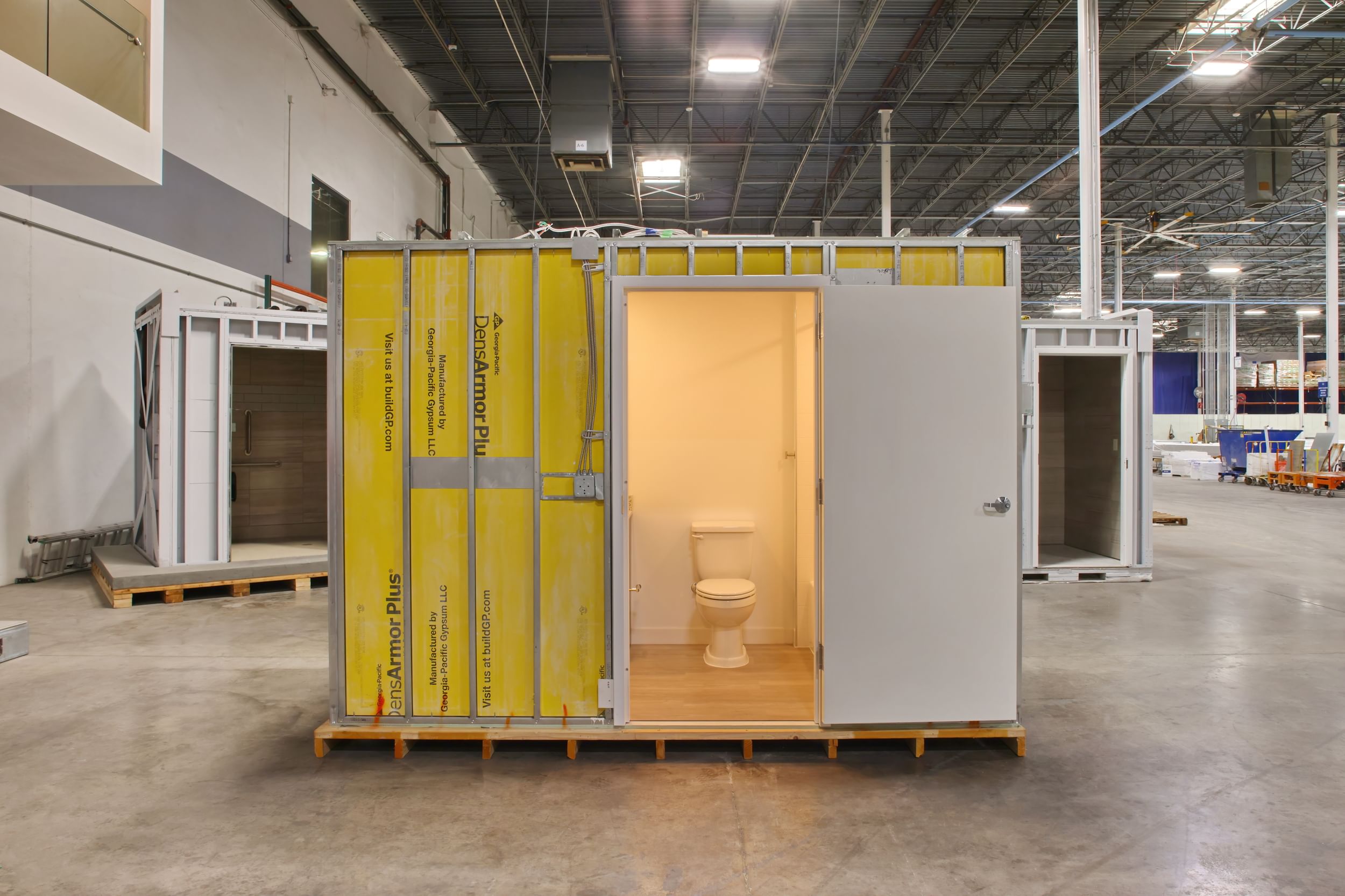 This affordable housing project featured both standard and ADA/mobility-adaptable design prefabricated bathroom pods. The innovative approach included PVC waste lines for streamlined toilet and sink Ptrap installation, custom-made vanity millwork, and solid surface vanity tops. The pods were equipped with permanent painted doors, frames, and hardware, minimizing on-site finishing requirements.