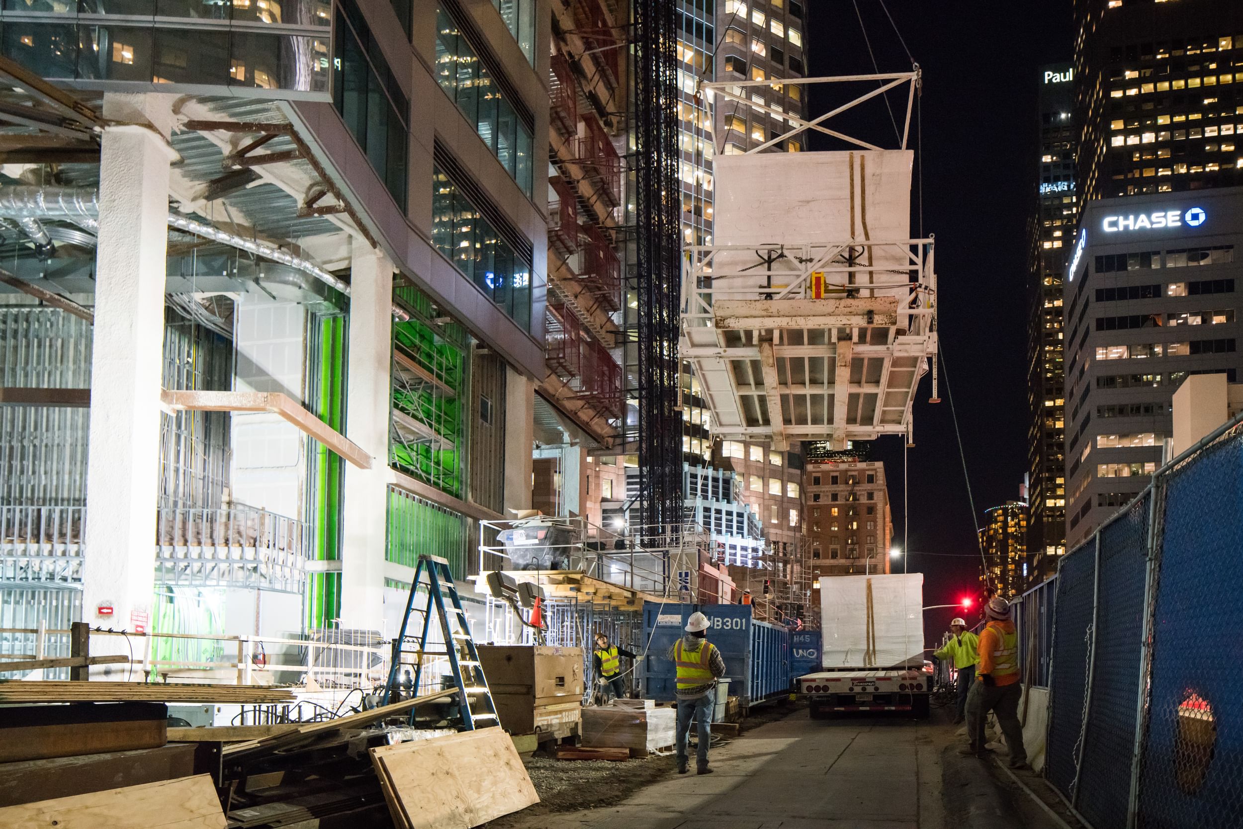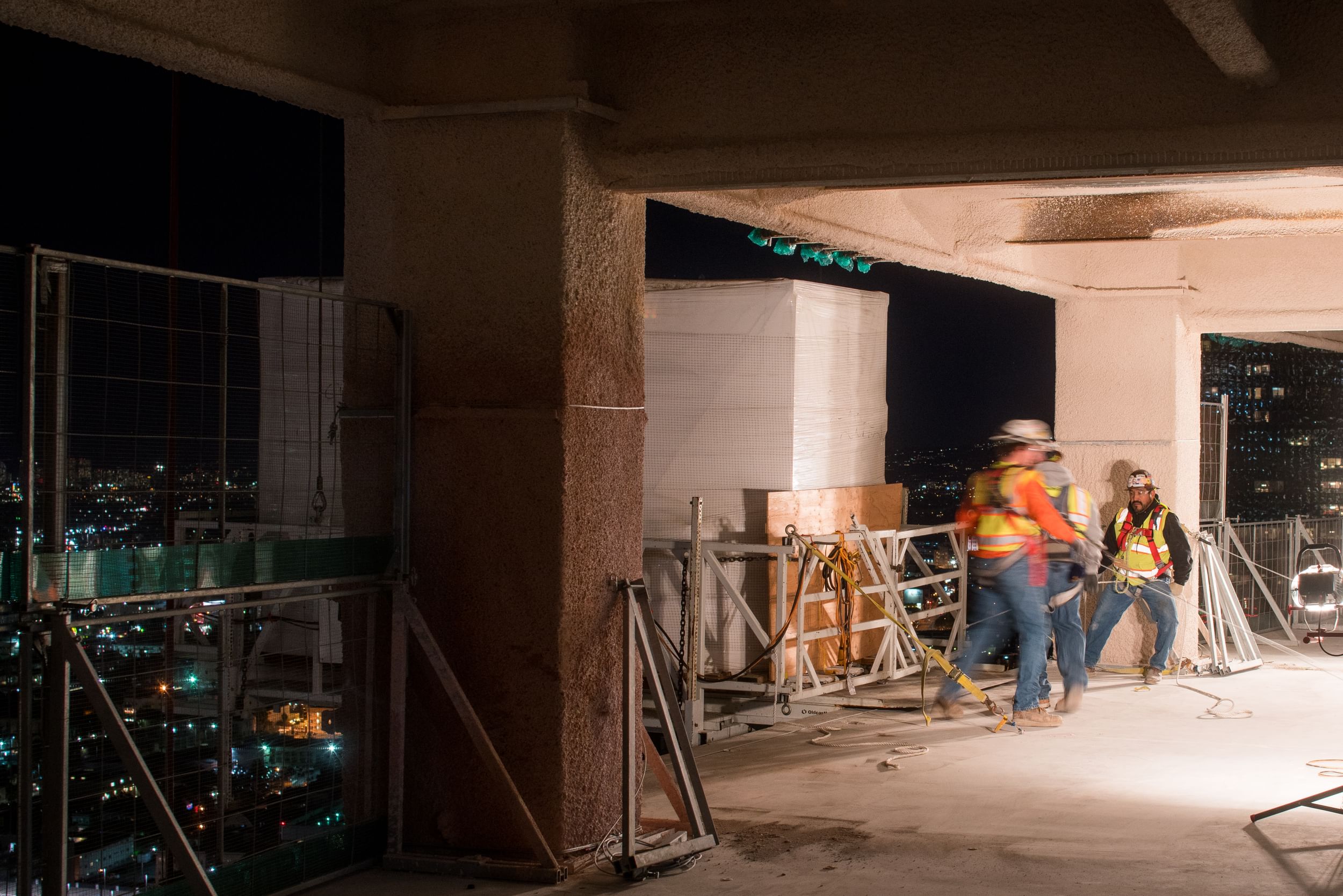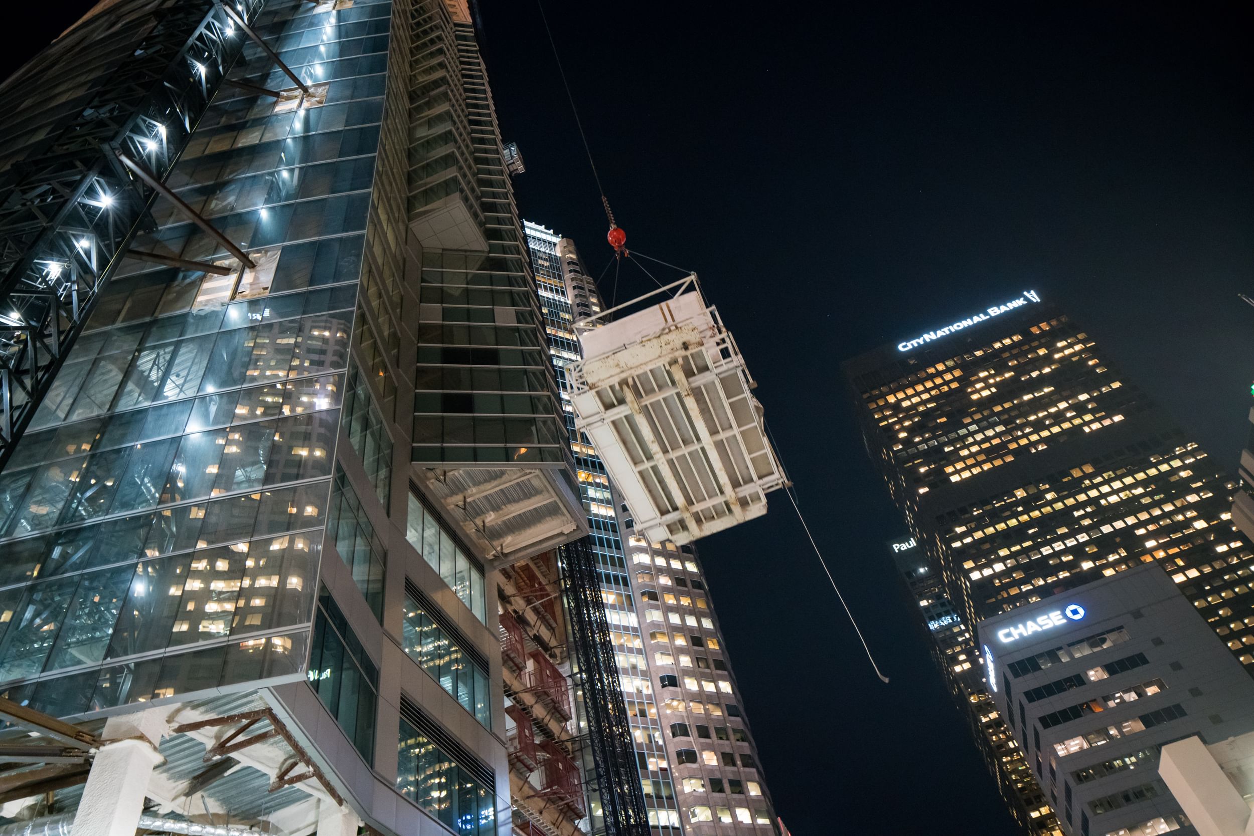 SurePods supplied 698 factory-built, fully complete bathroom pods for the project. To minimize the disturbance to the downtown LA community, SurePods shifted their delivery schedule to nighttime. This approach helped keep SurePods' presence to a minimum on the critical path and ensured the project remained on schedule. The finished bathrooms were kept locked for the duration of the interior construction process, preserving their quality and readiness for final installation.