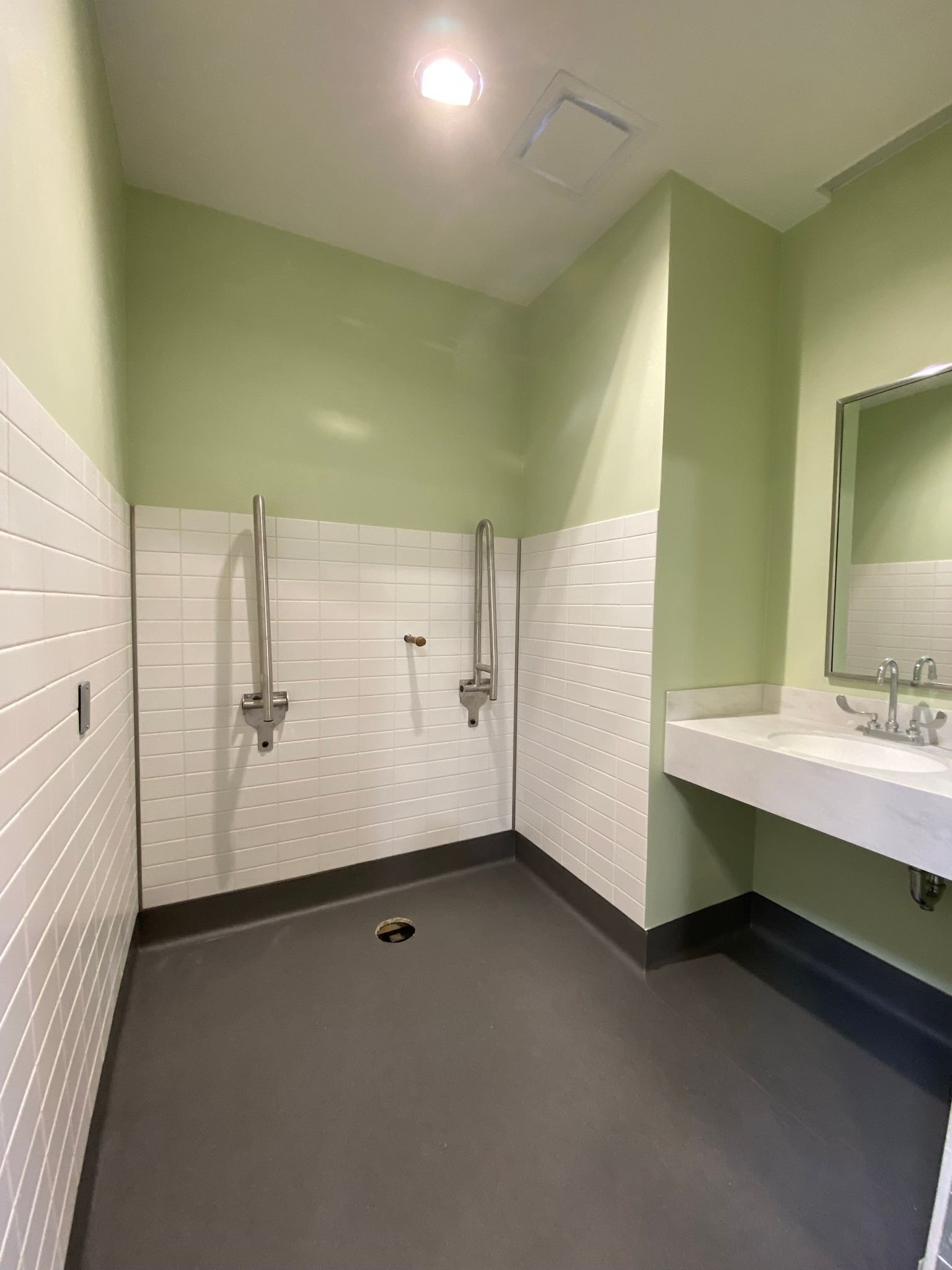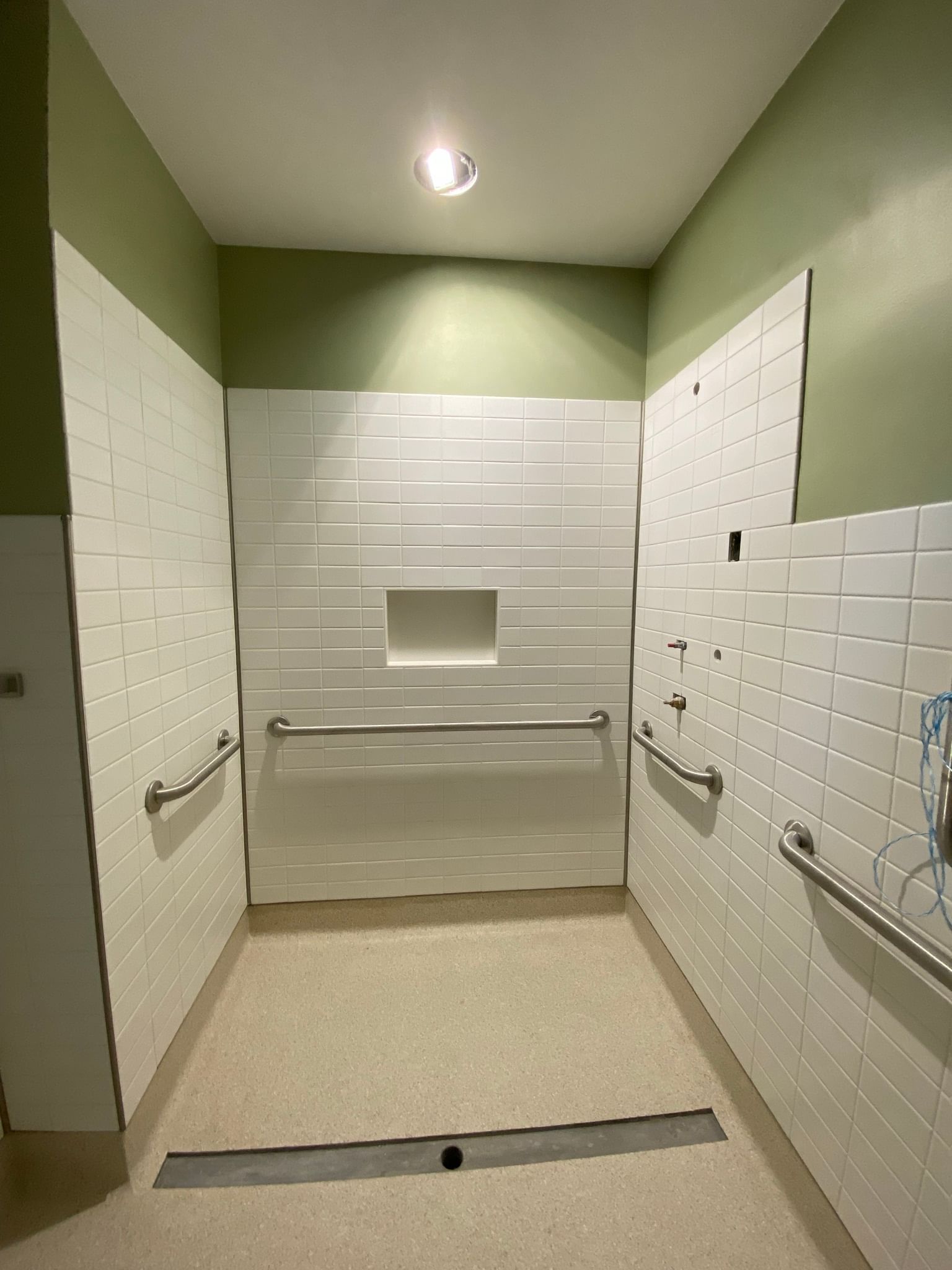 The bathroom pods designed for the Behavioral Health Unit had special specifications to meet in order to comply with the New York State Office of Mental Health guidelines for anti-ligature and tamper-resistant components. This was the first project SurePods produced a fully anti-ligature pod, including handrails, floor drain, faucet, plastic mirror, prison-style toilet, and more. 31 of the 343 patient bathroom pods were anti-ligature, while the rest were standard patient wetrooms.