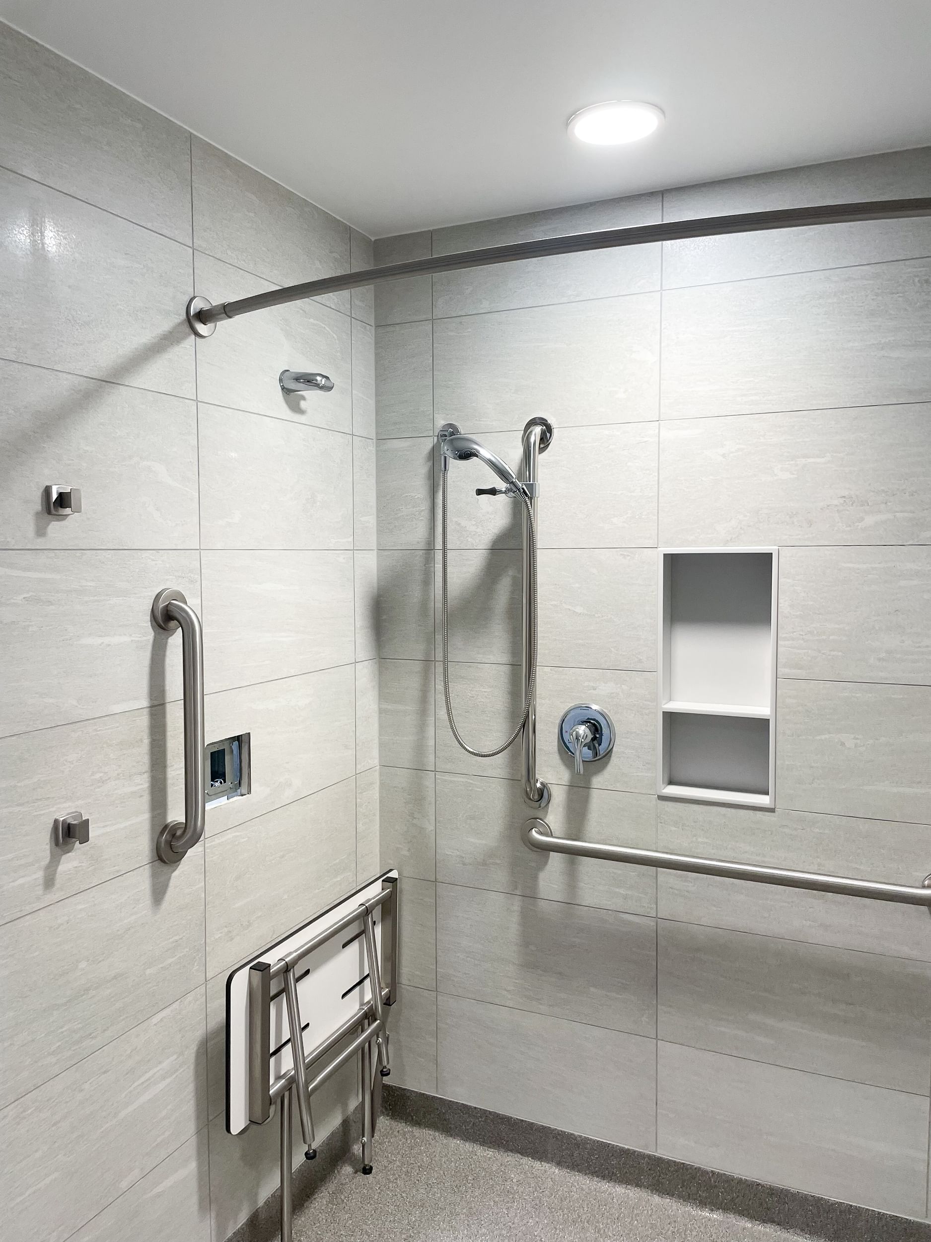 The prefabricated pods consistently delivered high-quality finishes with fewer punch list items compared to traditionally built bathrooms. Each pod arrived complete, including epoxy floors, allowing a faster turnover of the patient rooms. In the traditionally built bathrooms, the epoxy had to be completed prior to installing the sheet vinyl in the patient rooms, delaying the patient room schedules.