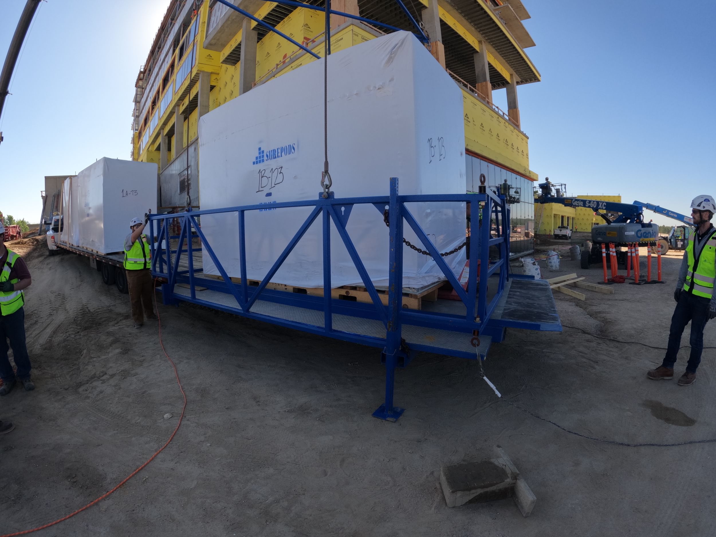 Prior to being transported to Aurora, Colorado the mock-up underwent thorough reviews by the design team, owner group and GC in Phoenix. This project boasts a unique hybrid team consisting of DPR, SurePods and GE Johnson craft, collaborating in the loading and placement of the pods.