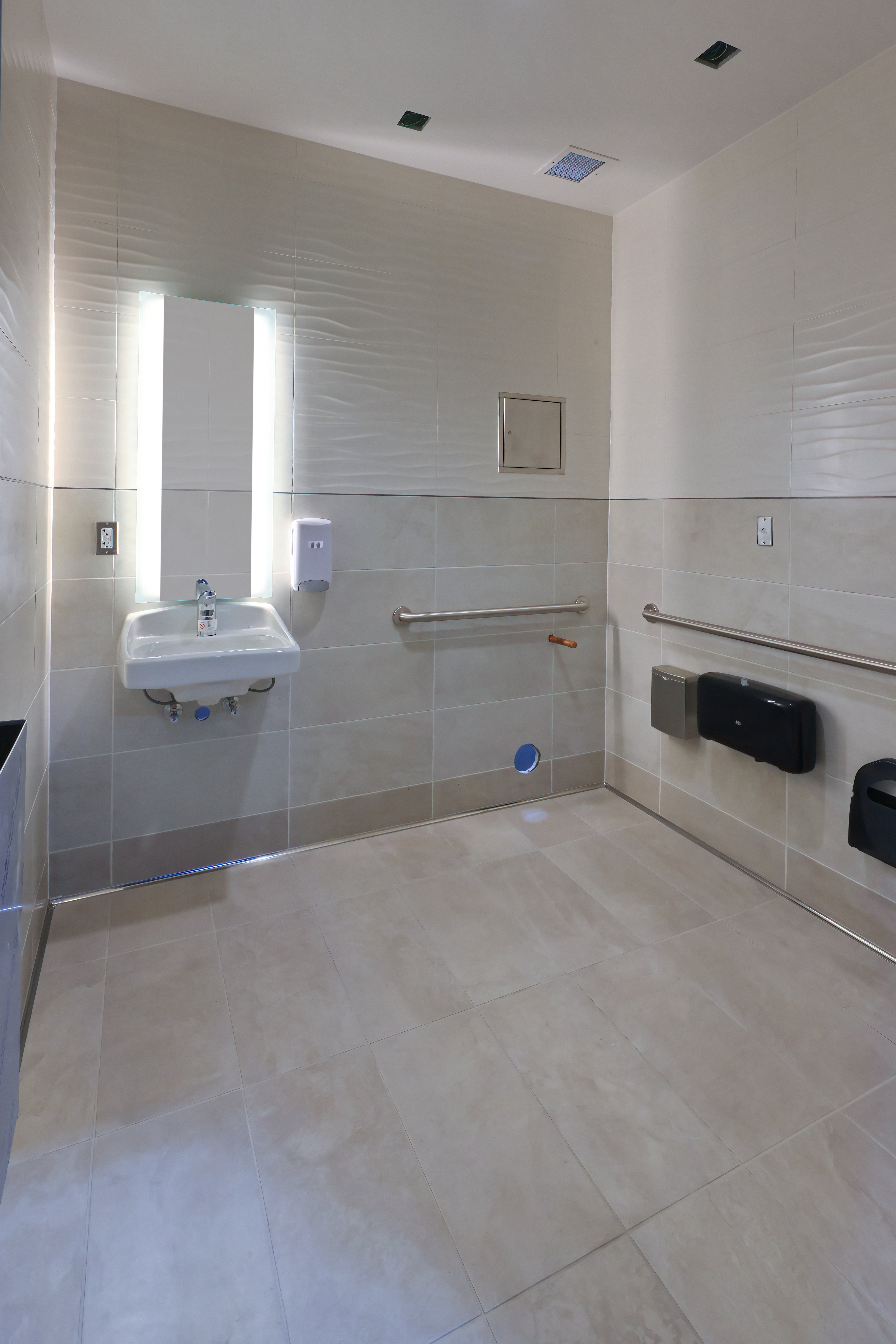 The team worked closely with UCDH and SmithGroup to secure early buy-in on design standards and approvals, ensuring that every prefabricated bathroom unit arrived fully code-compliant and installation-ready. This proactive approach not only streamlined construction but also reinforced the importance of collaborative, front-loaded design in achieving both aesthetic and functional success.