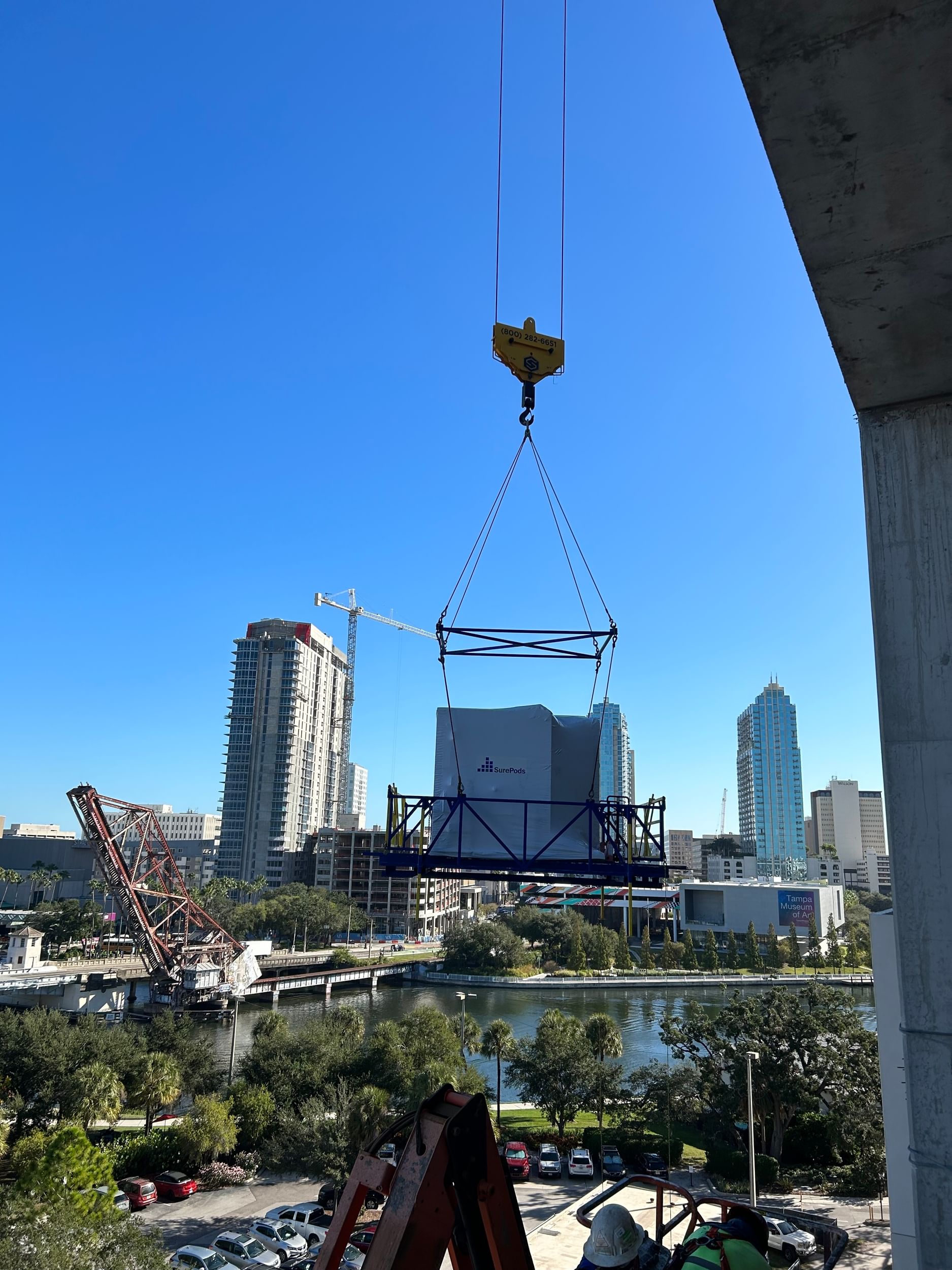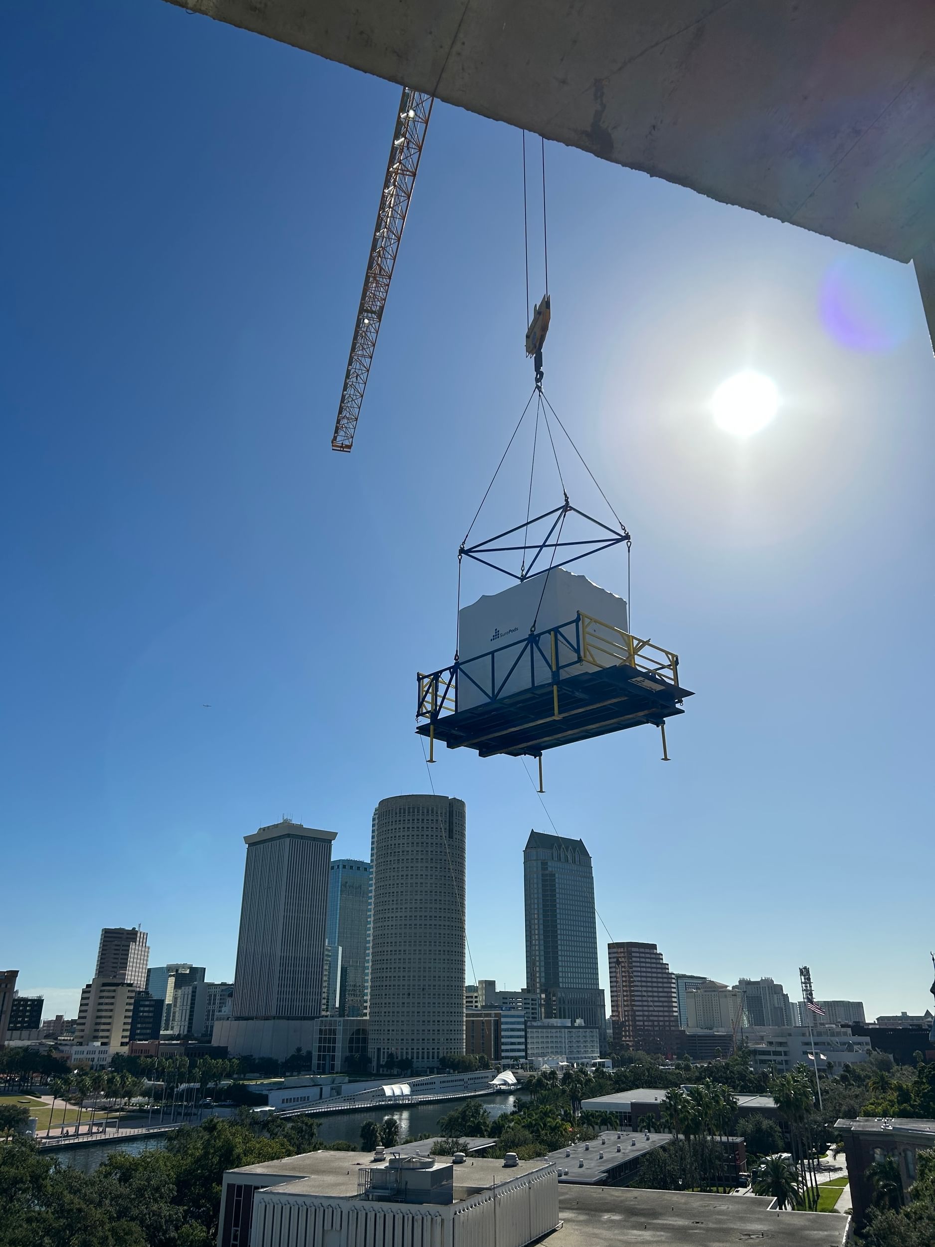 UTampa aimed to open the building by the start of the 2024 fall semester. Meeting this goal required overcoming unique logistical challenges related to delivery and installation, as operating within an active campus presented specific roadblocks, including restricted site access. Operating within an active campus environment presented unique logistical challenges, including restricted site access. SurePods collaborated closely with The Beck Group to manage crane time, coordinate deliveries, and ensure smooth installation. Further, SurePods meticulously planned to load pods during UTampa’s Winter Intercession to minimize disruptions, safety measures, job hazard analyses, and ongoing communication, fostering a safe and effective worksite.